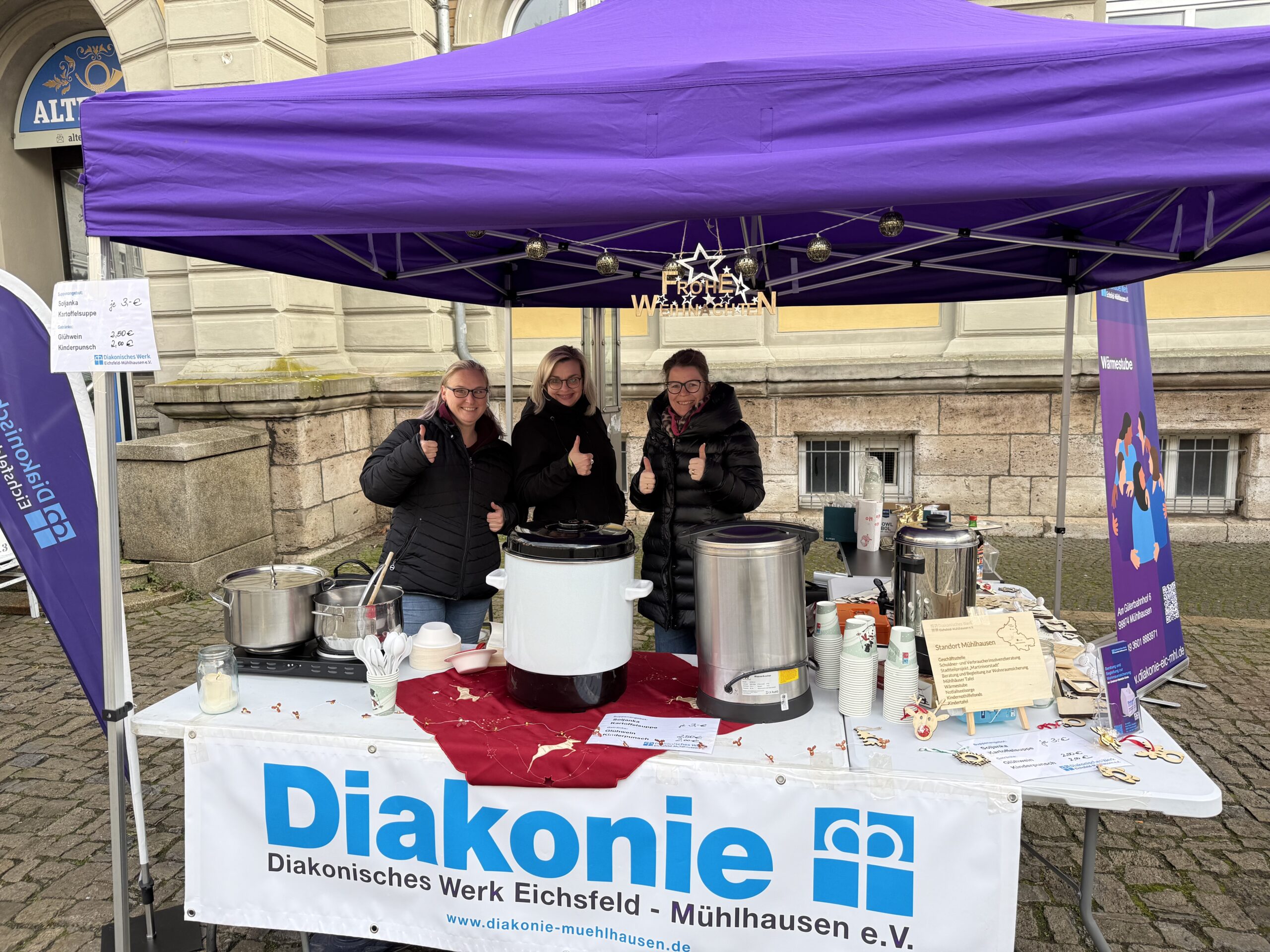 Mit selbstgekochter Suppe für den guten Zweck: Das Diakonische Werk war beim 1. Mühlhäuser Suppen- und Kreativmarkt dabei – mit großem Zuspruch und ausverkauften Töpfen.