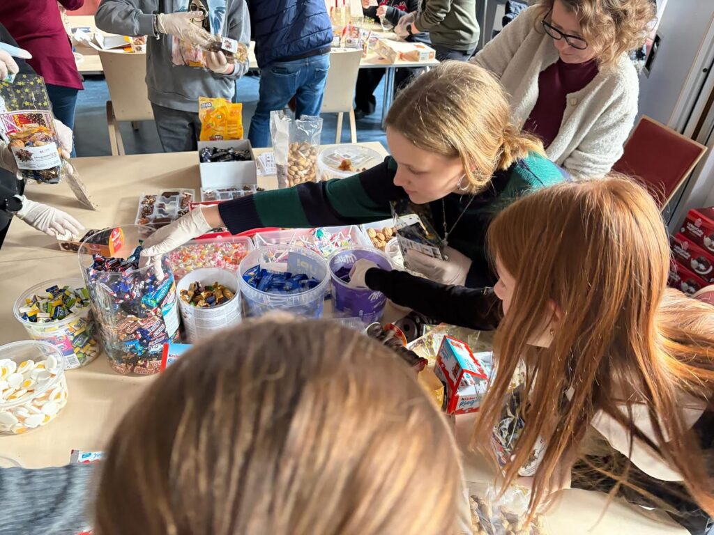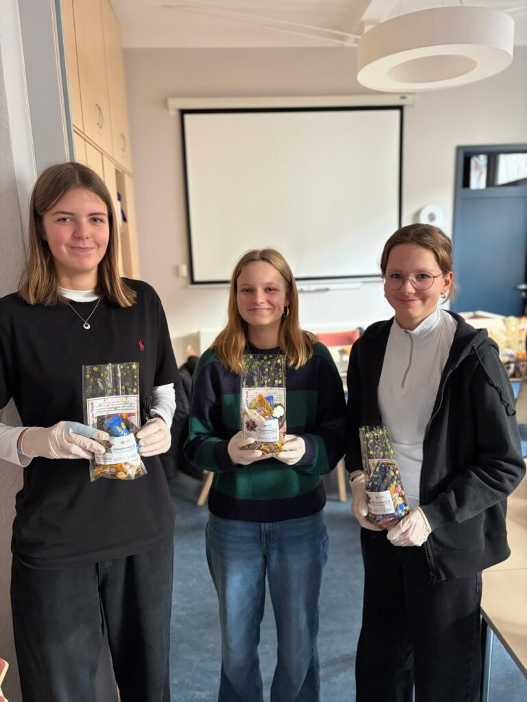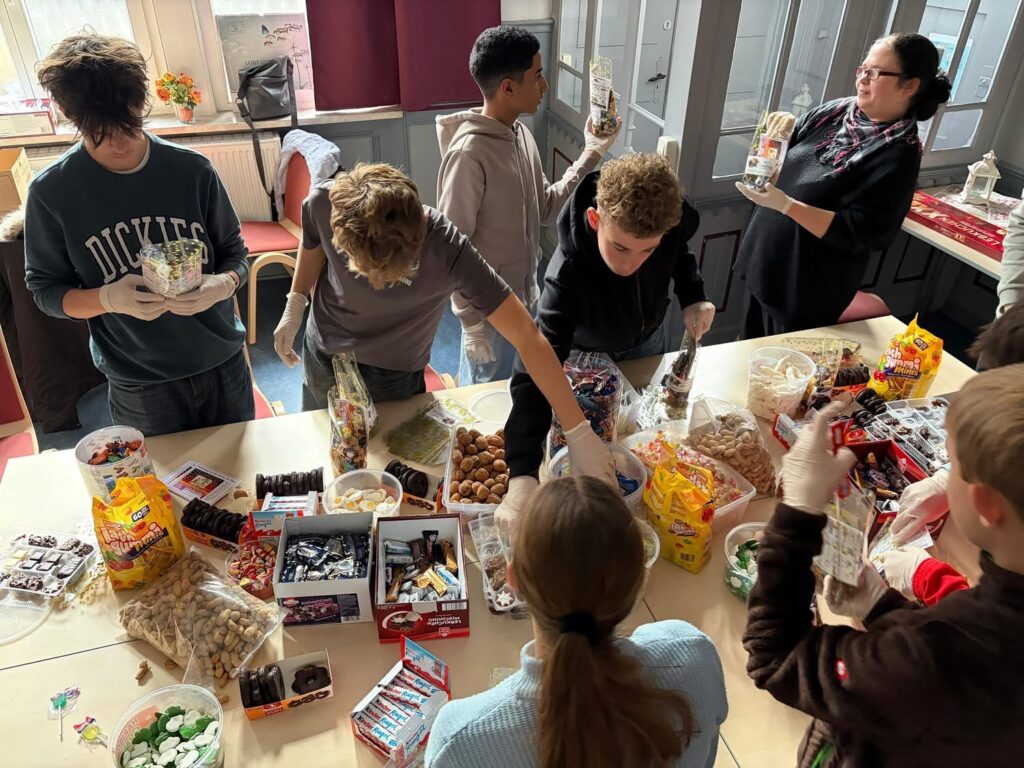 Besonders hervorheben möchten wir die außerordentliche Leistung von Herrn Gräbedünkel, der nicht nur die Idee zu dieser Aktion hatte, sondern auch mit beeindruckendem Einsatz und der Unterstützung zahlreicher großzügiger Spenderinnen und Spender eine große Menge an Lebensmitteln zusammentrug – darunter Lebkuchen, Plätzchen, Schokolade und viele weitere Leckereien. Dank dieser umfangreichen Spenden konnten wir jede einzelne Tüte reichhaltig, abwechslungsreich und mit sehr viel Herz bestücken.