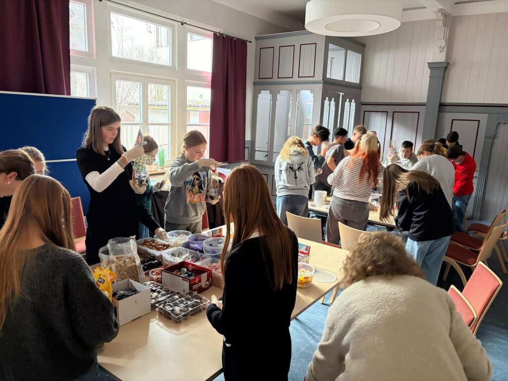 Mit vereinten Kräften packten wir knapp 400 liebevoll gefüllte Tütchen – kleine Überraschungspakete, die Kindern in herausfordernden Lebenssituationen ein Stück Freude, Wärme und Aufmerksamkeit schenken sollen. Die Tüten gehen an Kinderheime, das Kinderhospiz, an die Kinderstationen der umliegenden Krankenhäuser, an die Kindertafel sowie an weitere soziale Einrichtungen, in denen Kinder Unterstützung und Lichtblicke dringend brauchen.