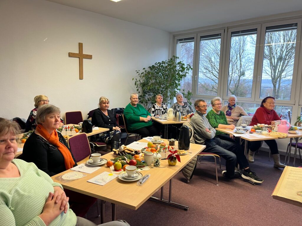 Ein fester Bestandteil der Weihnachtsfeier war das anschließende Kaffeetrinken. Bei Kaffee, Kuchen und weihnachtlichen Leckereien nutzten die Gäste die Gelegenheit für Gespräche, persönliche Begegnungen und ein gemütliches Beisammensein. Die Zeit verging wie im Flug, begleitet von Lachen, Erzählungen und einer warmen, familiären Stimmung.